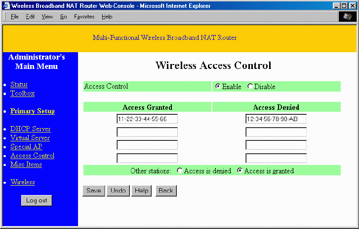 4. Wireless Access Control: The IEEE 802.11 standard allows for Access Control rules