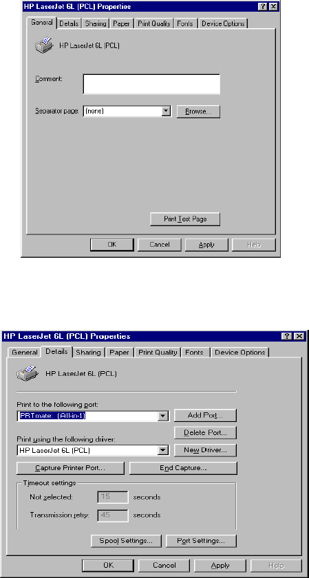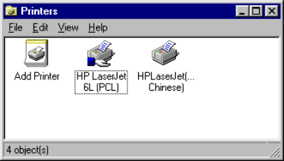 printer. On a Windows 95/98 platform, open the Printers window in the My Computer