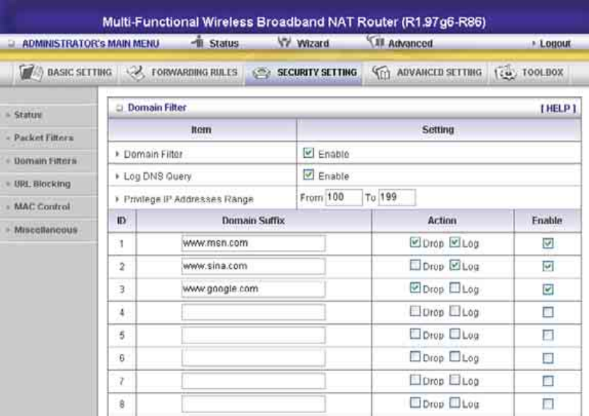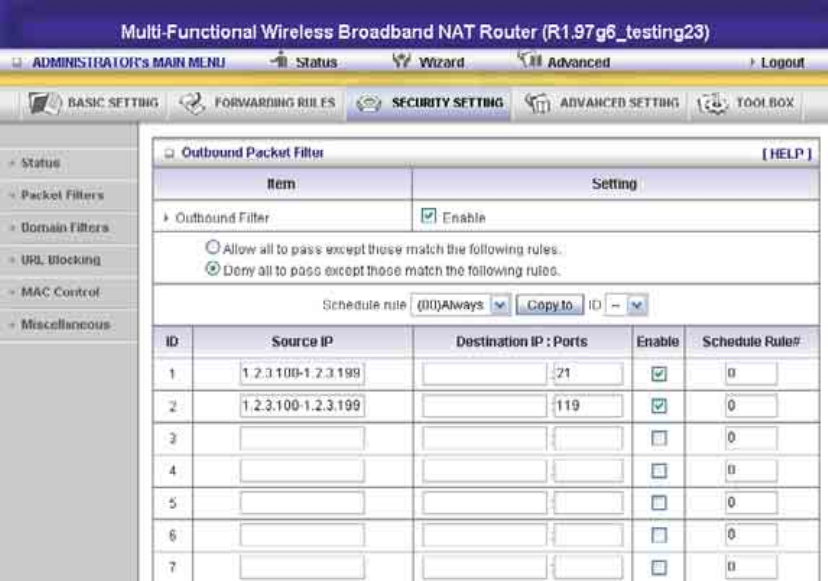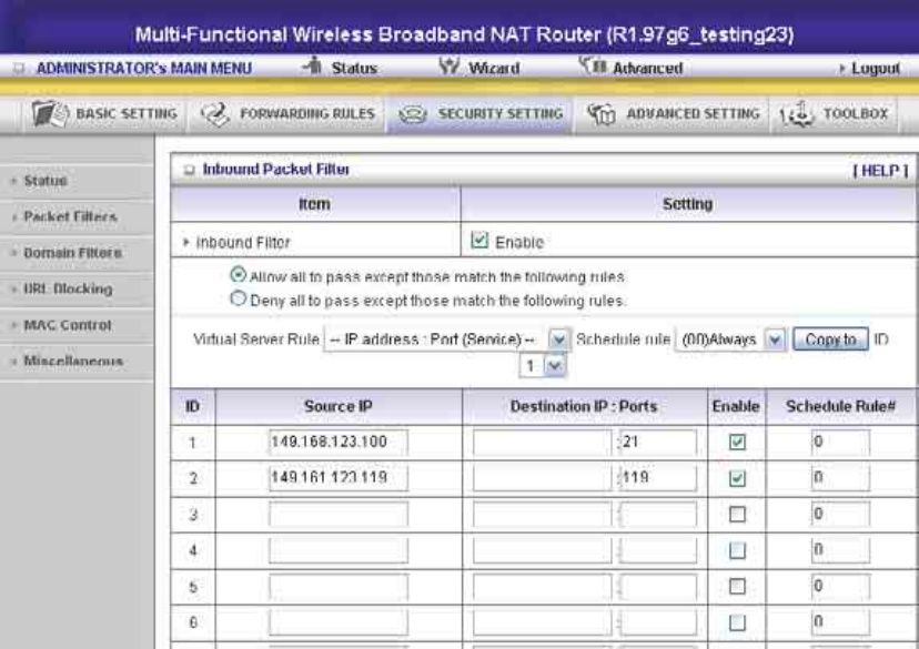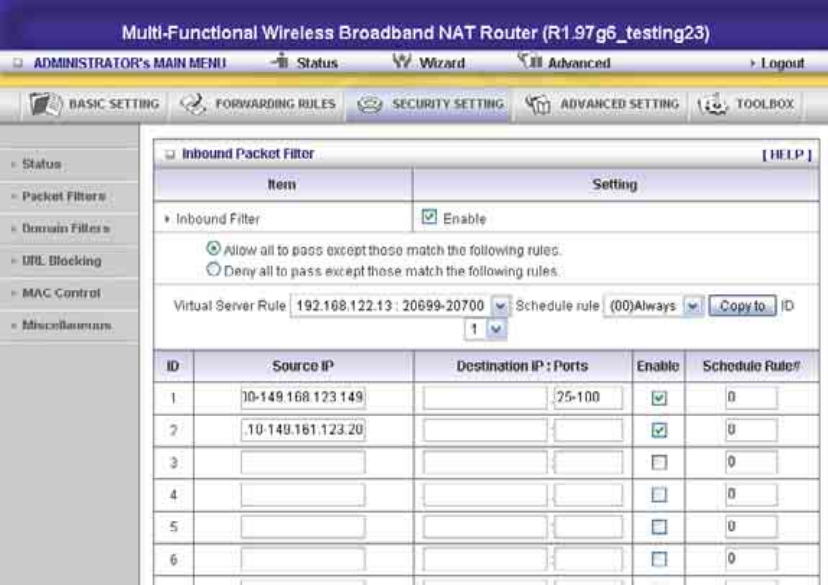 All unwanted packets from outside intruders are blocked to protect your Intranet.