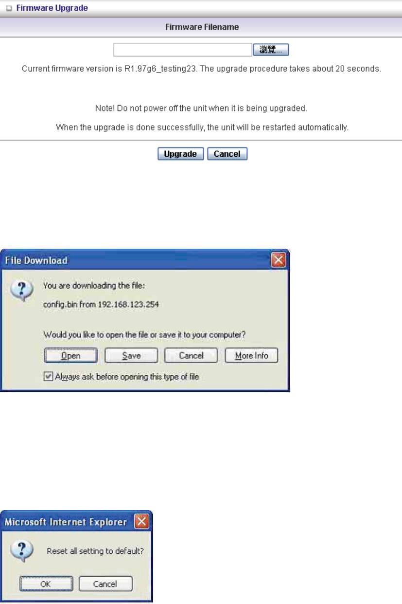 Then click” Upgrade” if necessary, please input password ”admin” .Then reset to default and refer to