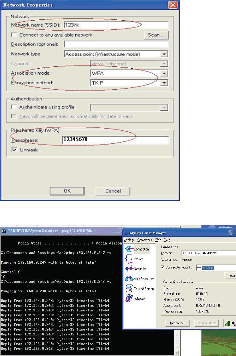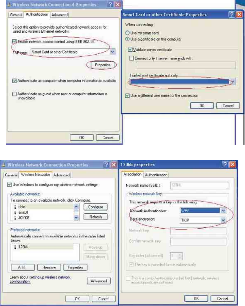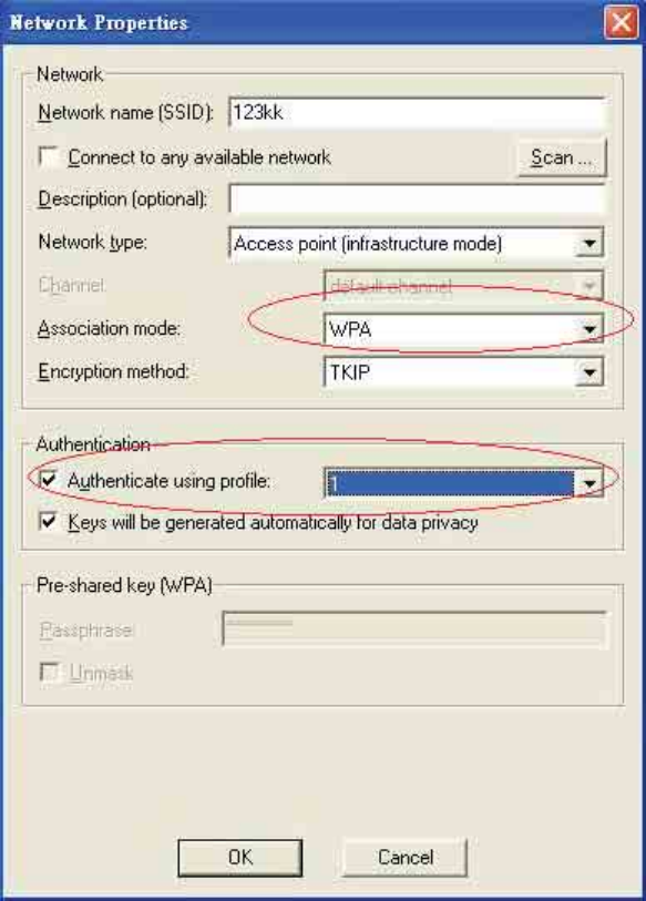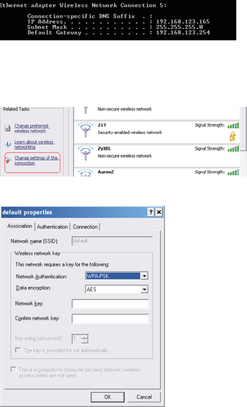 If SSID is default and click “Properties” to check if the driver of wireless client supports AES