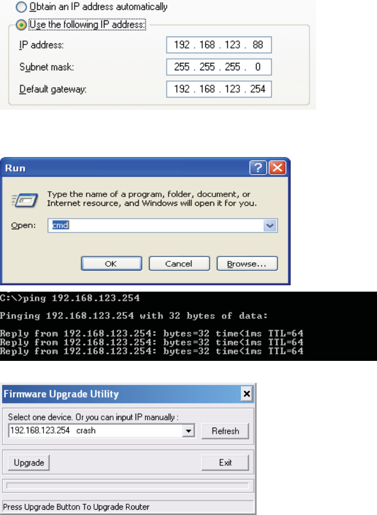 be 192.168.123.254. Then click “OK” button to complete TCP/IP setup.