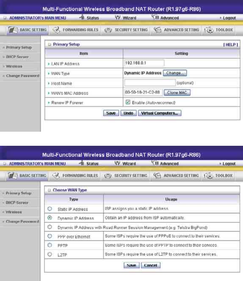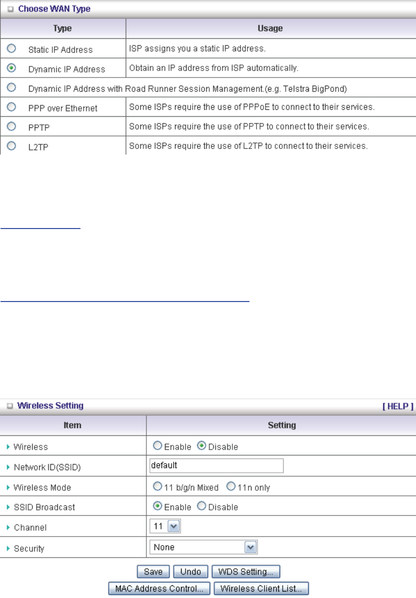 The router supports some WAN types, Static, Dynamic, PPPoE , PPTP ,L2TP, Dynamic IP