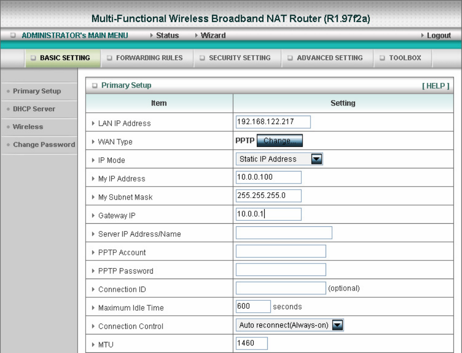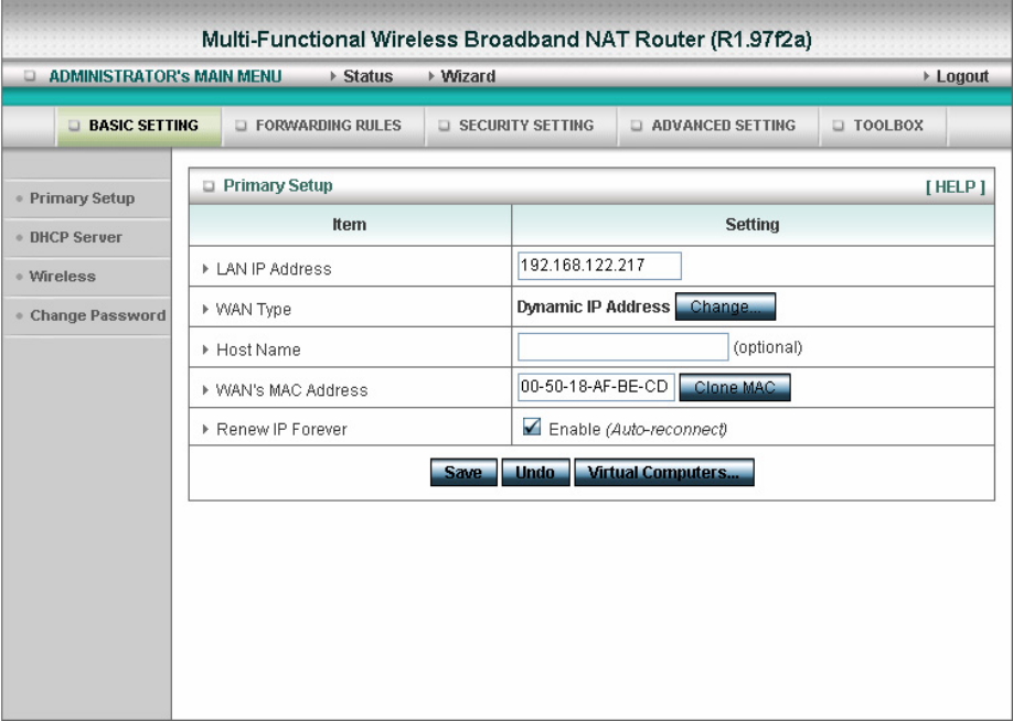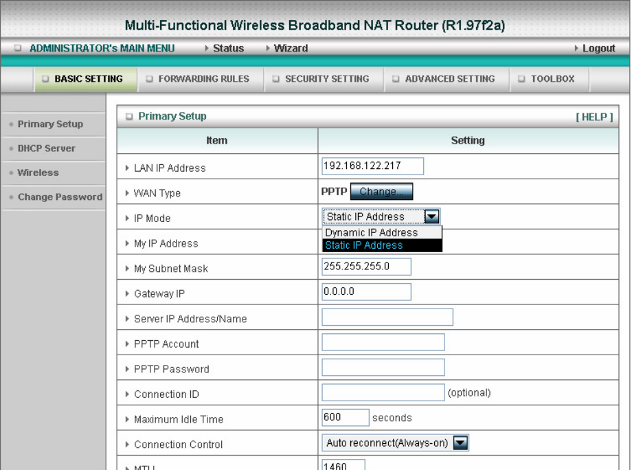 5. Primary WINS/Secondary WINS: This feature allows you to assign WINS Servers