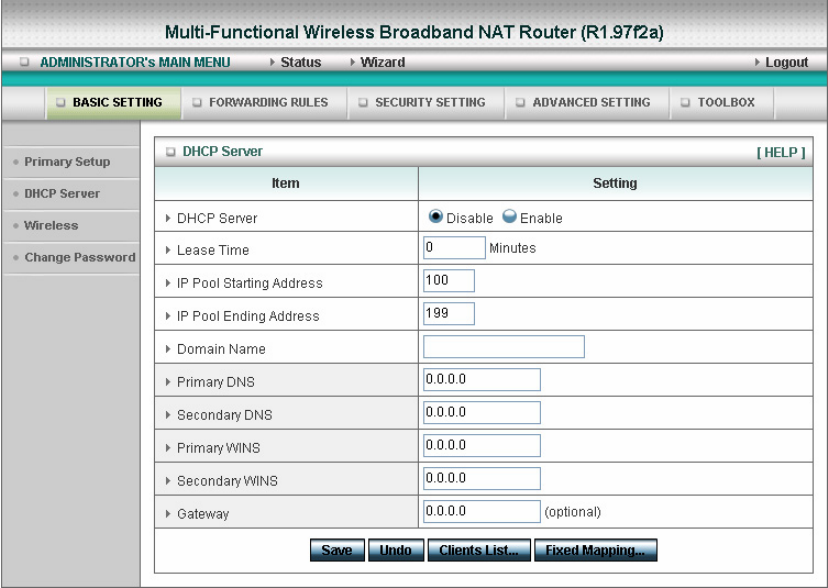1. DHCP Server: Choose “Disable” or “Enable.”
