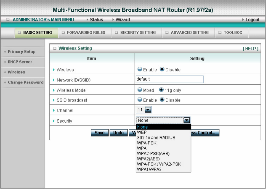 When you enable the 128 or 64 bit WEP key security, please select one WEP key to be used and input