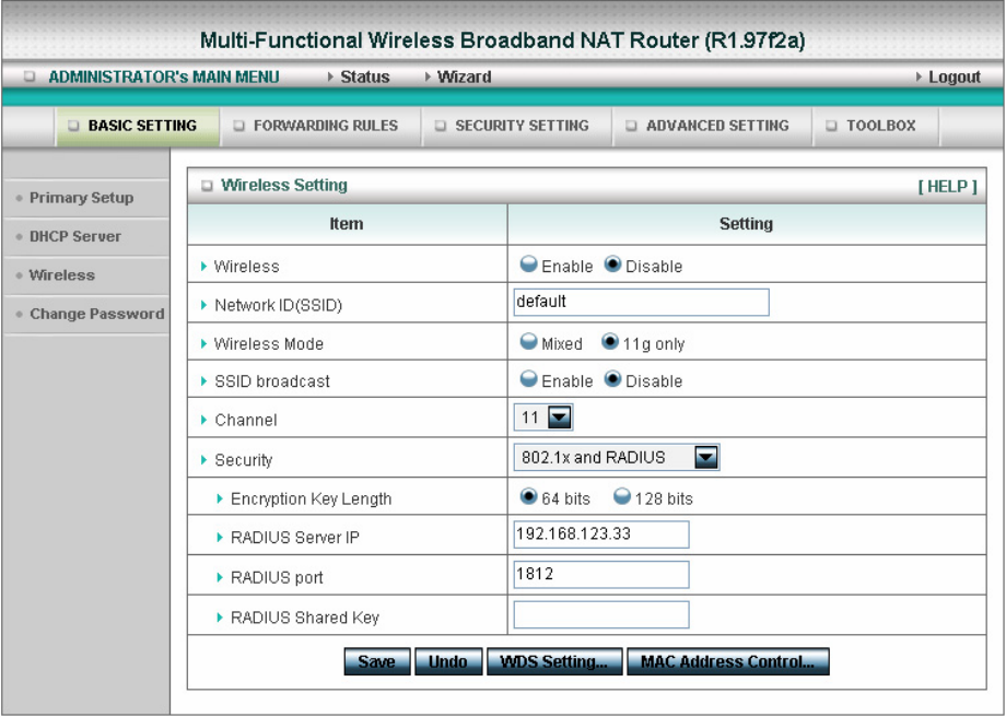 Wireless user must authenticate to this router first to use the Network service. RADIUS Server
