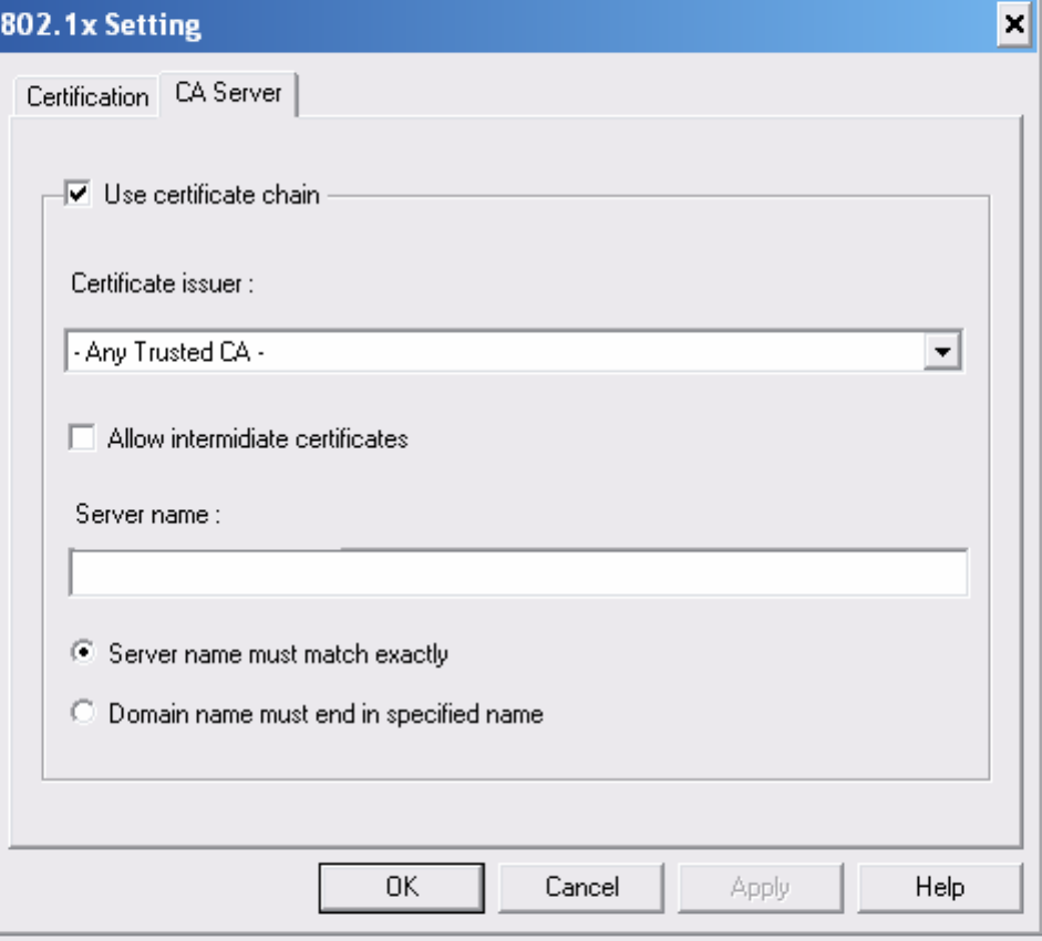 iii. Certificate page will pop up; choose a certificate for server authentication.