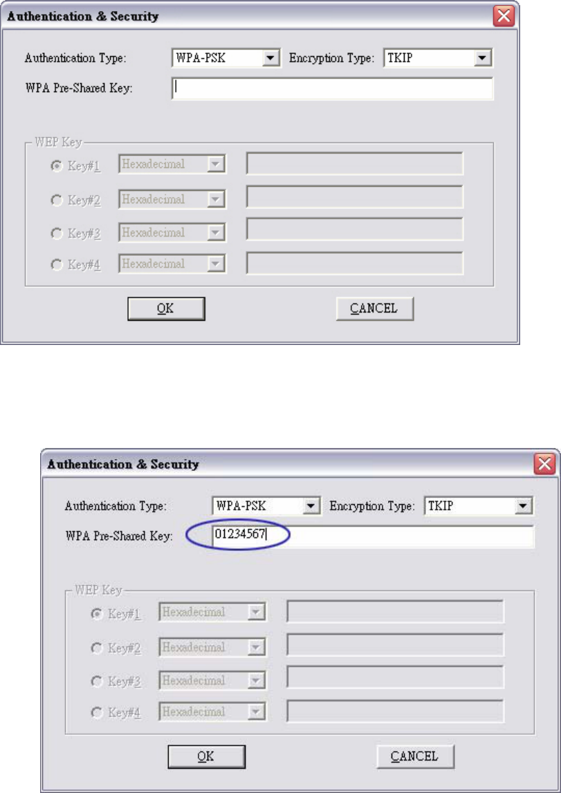 4. Authentication Type is WPA-PSK. Select correct encryption (TKIP or AES).Enter WPA