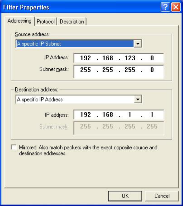 IP Address: 192.168.123.0 and Subnet mask: 255.255.255.0.