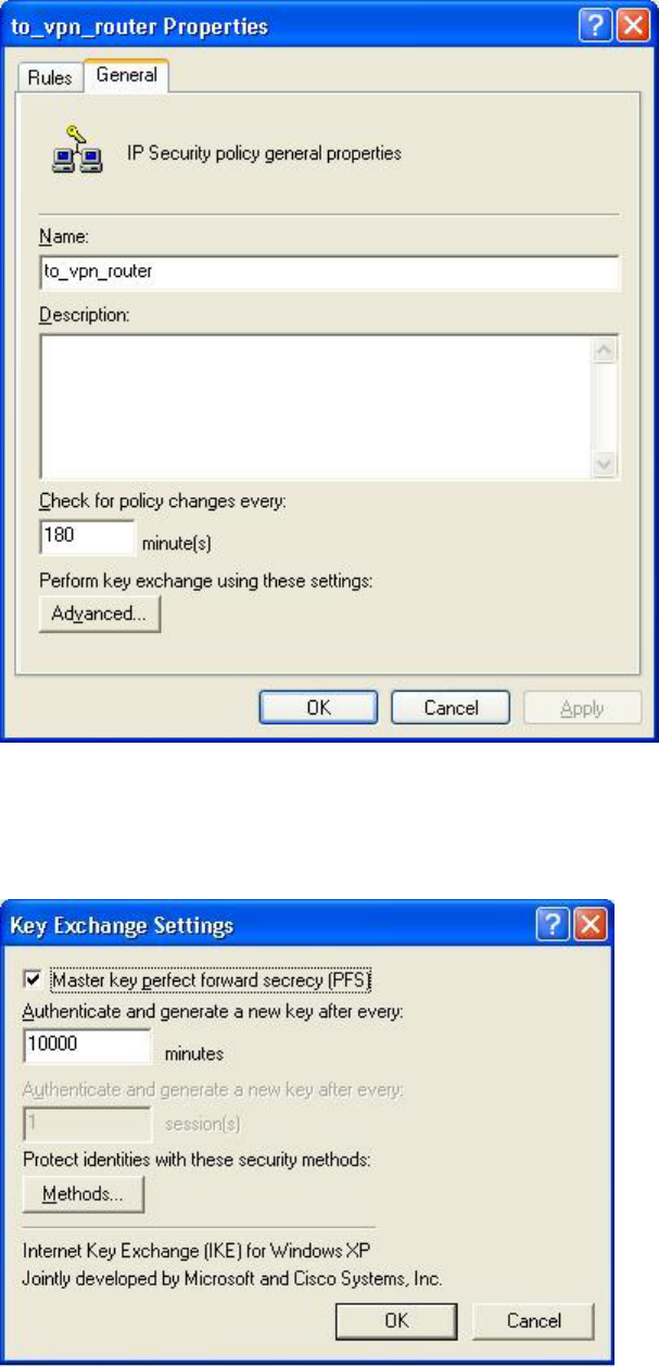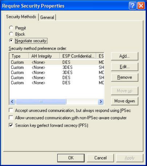 select [Negotiate security], Select [Session key Perfect Forward Secrecy (PFS)]