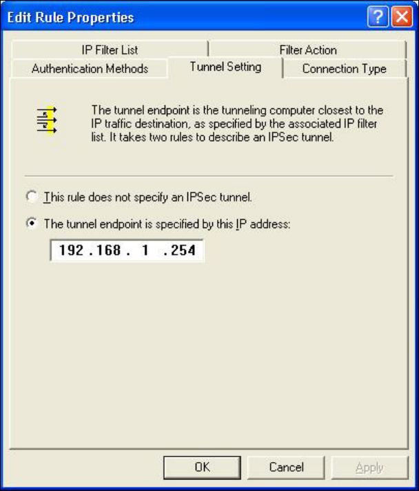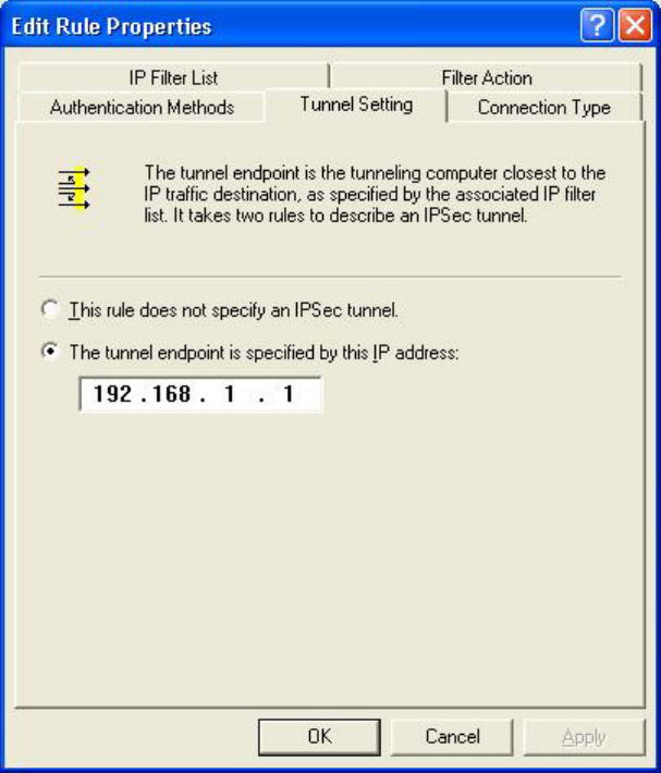 Configure [The tunnel endpoint is specified by this IP address]: 192.168.1.1