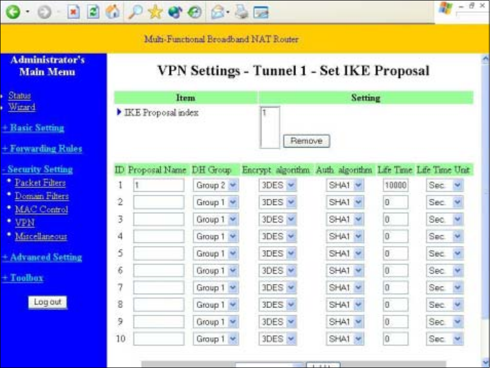 VPN Settings - Tunnel 1 - Set IKE Proposal