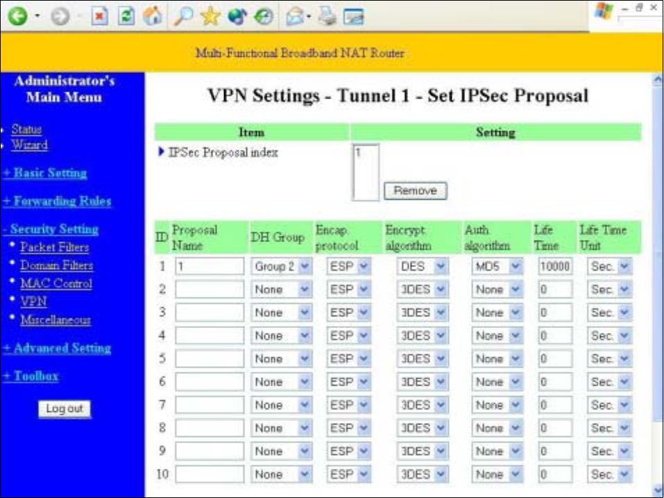 VPN Settings - Tunnel 1 - Set IPSec Proposal