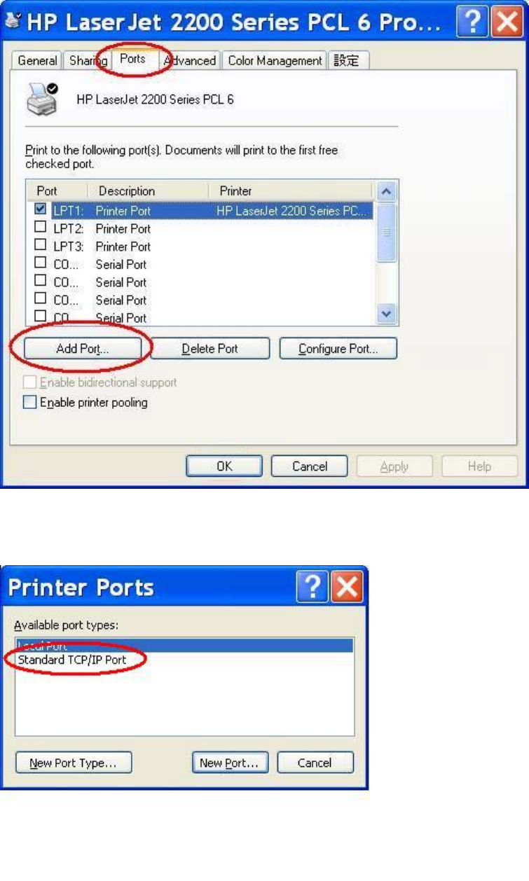 3. Select “Standard TCP/IP Port”, and then click “New Port…”