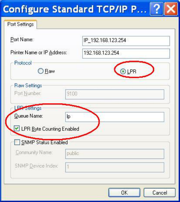 Type address of server providing LPD that is our NAT device:192.168.123.254