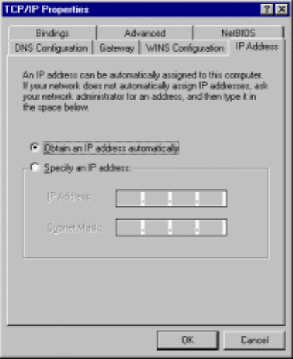 a. Select Obtain an IP address automatically in the IP Address tab.