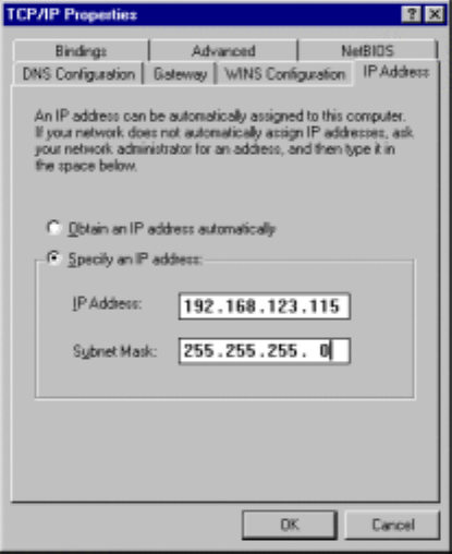 for IP Address field and 255.255.255.0 for Subnet Mask field.