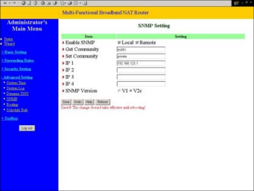 4. This device will send SNMP Trap message to 192.168.123.1 (Use SNMP Version V2c)