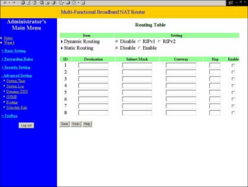 Routing Table settings are settings used to setup the functions of static and dynamic routing.