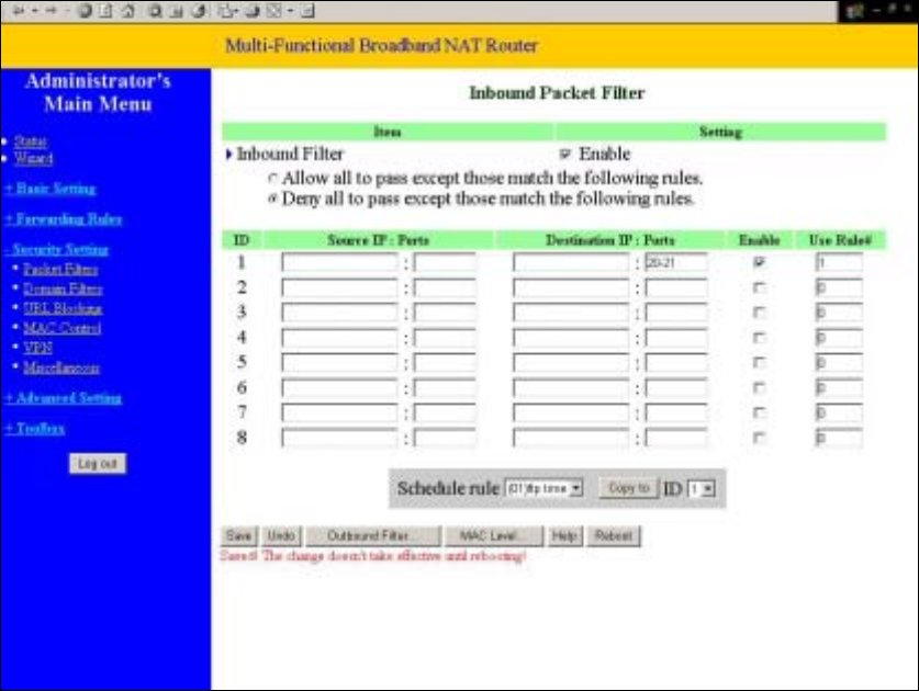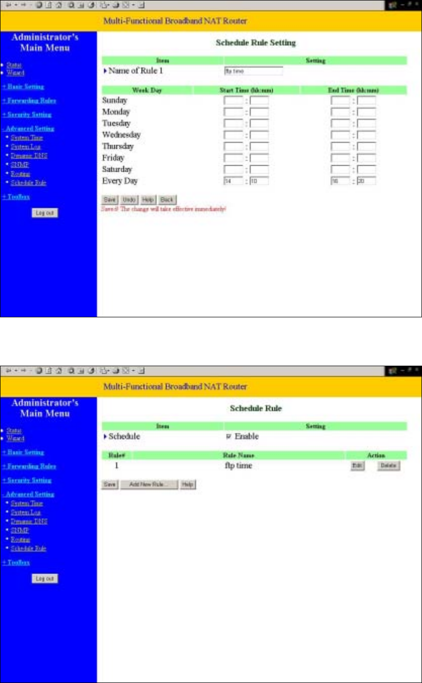Schedule Rule can be apply to Virtual server and Packet Filter, for example: