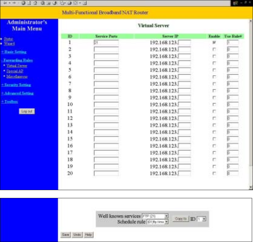 Exanple1: Virtual Server – Apply Rule#1 (ftp time: everyday 14:10 to 16:20)