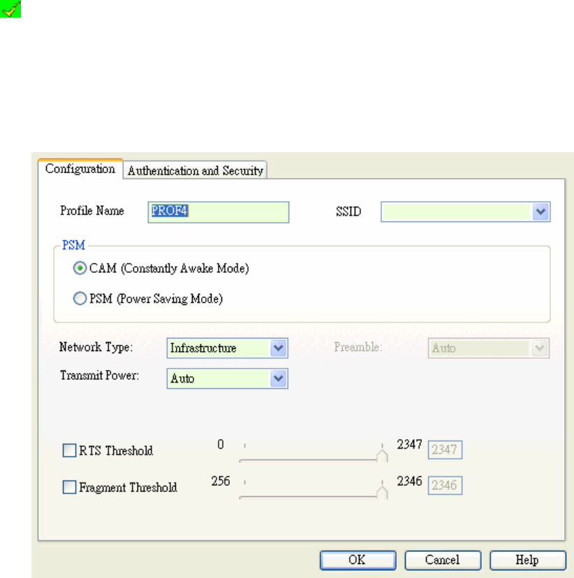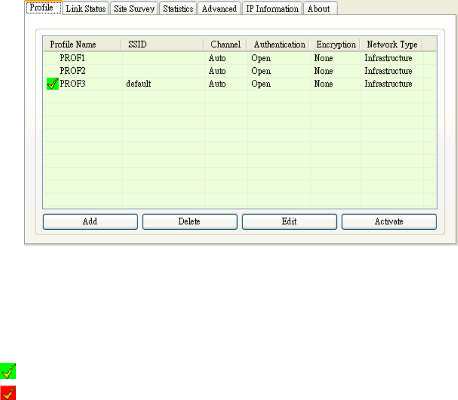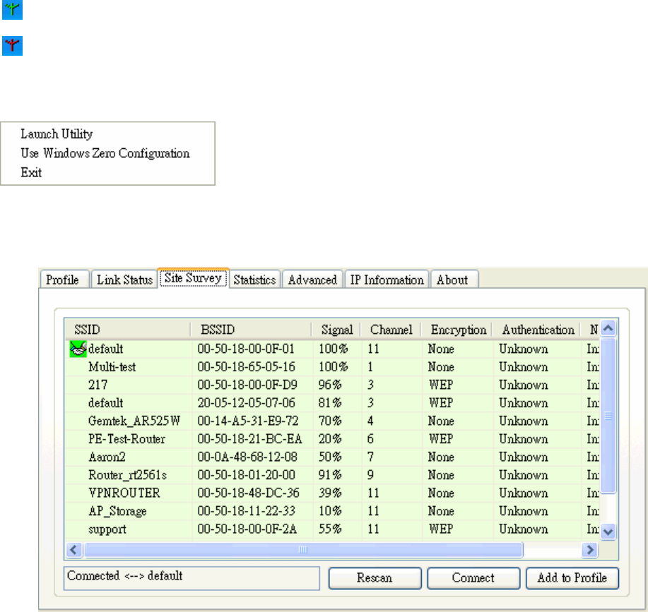 Note: When use site survey to make the connection. None of the profile will have the connection status icon.