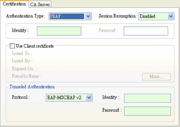 - Session Resumption: user can choose “ Disable ”, “ Reauthentication ”, “ Roaming ”, “ SameSsid ” and “