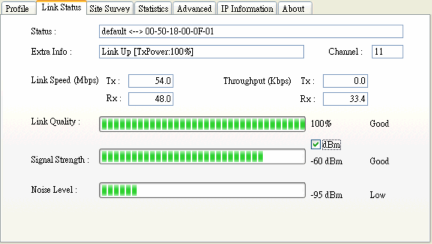 - Link Quality: Display connection quality based on signal strength and Tx/Rx packet error rate.