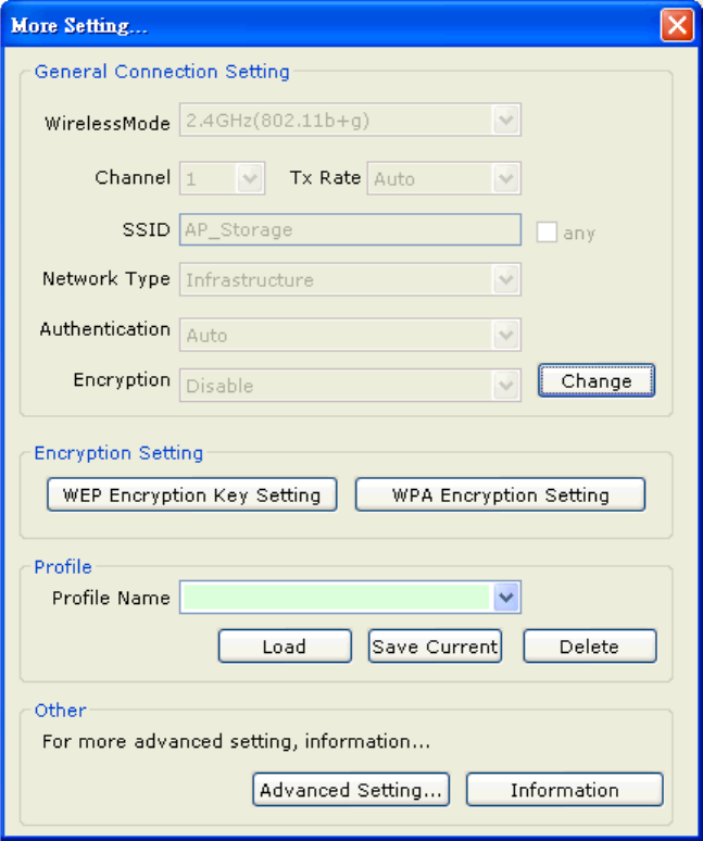 “More Setting”: Click this button to setup or to manage the current selected network.