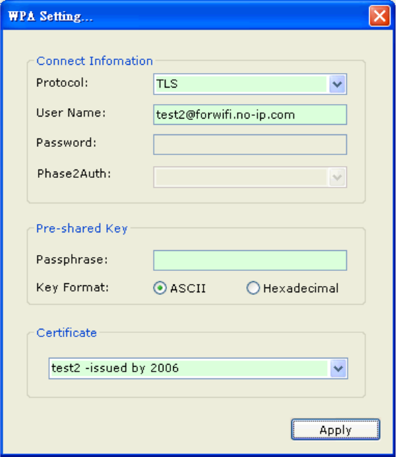 The setting will be worked if the connection encryption was WEP. To launch the setting, click the “WPA Encryption