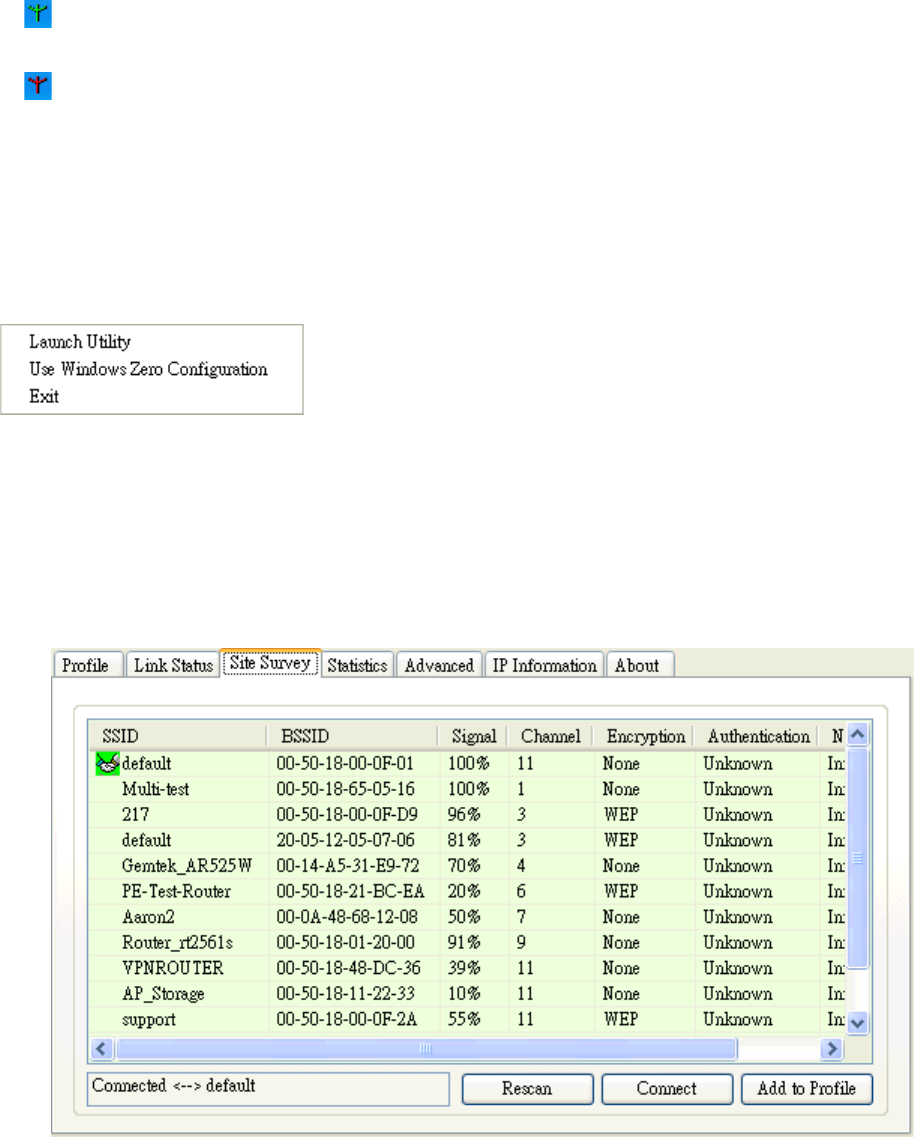 Note: When use site survey to make the connection. None of the profile will have the connection status icon.