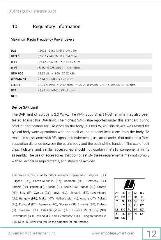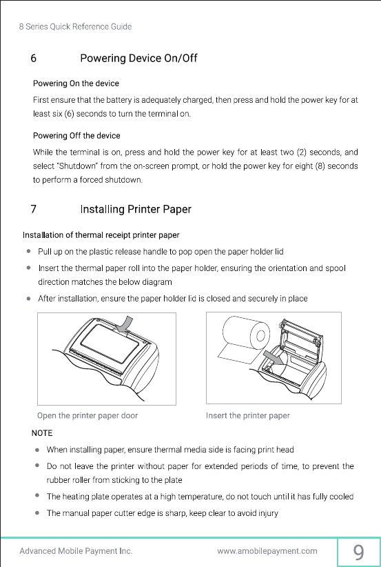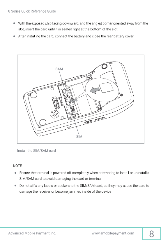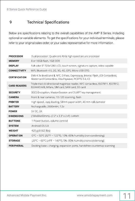 Advanced Mobile Payment Inc. 8 Series Smart POS Terminal AMP 8000 CE FCC