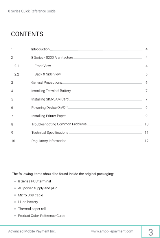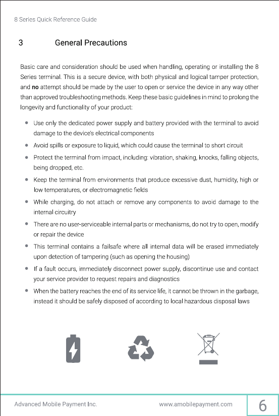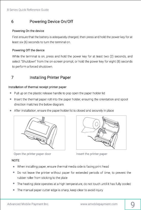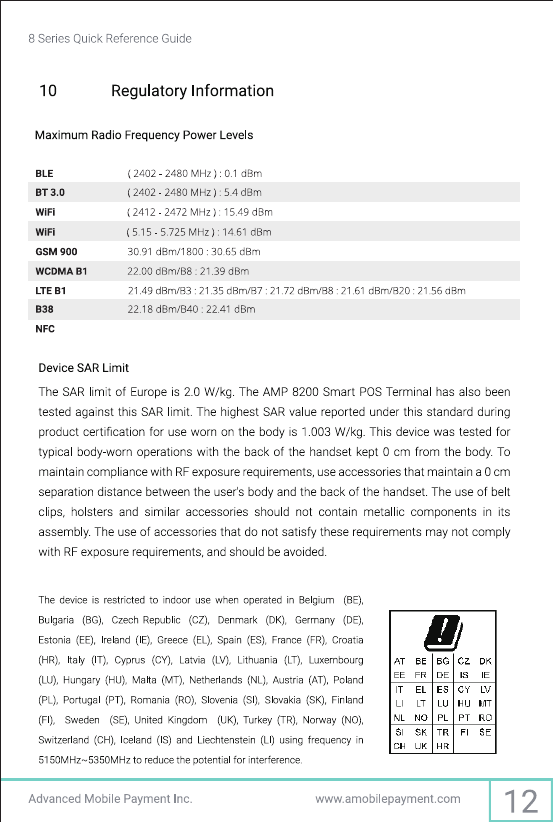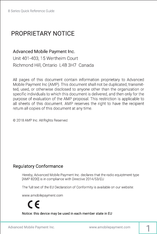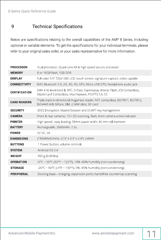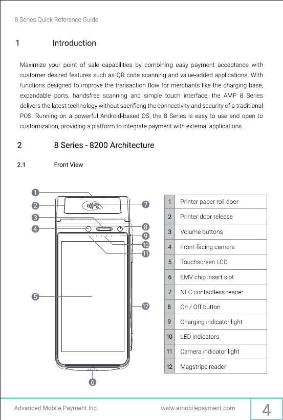 Advanced Mobile Payment Inc. 8 Series Smart POS Terminal AMP 8200 CE FCC