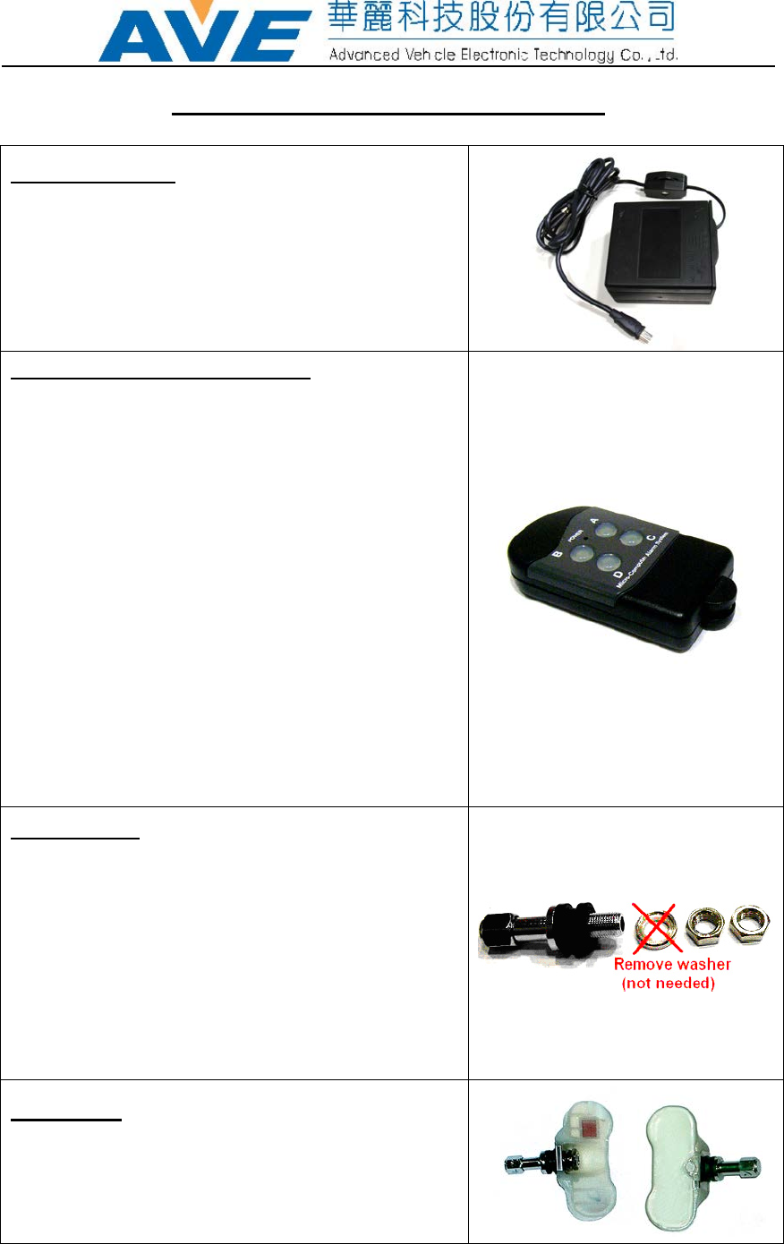 Advanced Vehicle Electronic Technology AVE-TPMS-T100C TPMS User Manual AVE TECHNOLOGY TPMS MANUAL