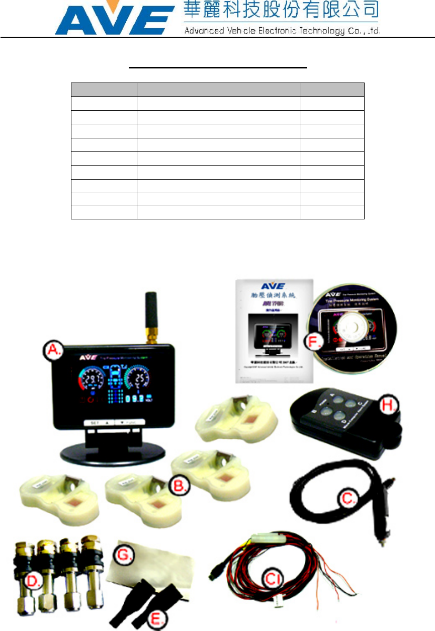 13. AVE TPMS Optional Accessories …………………………………… 25