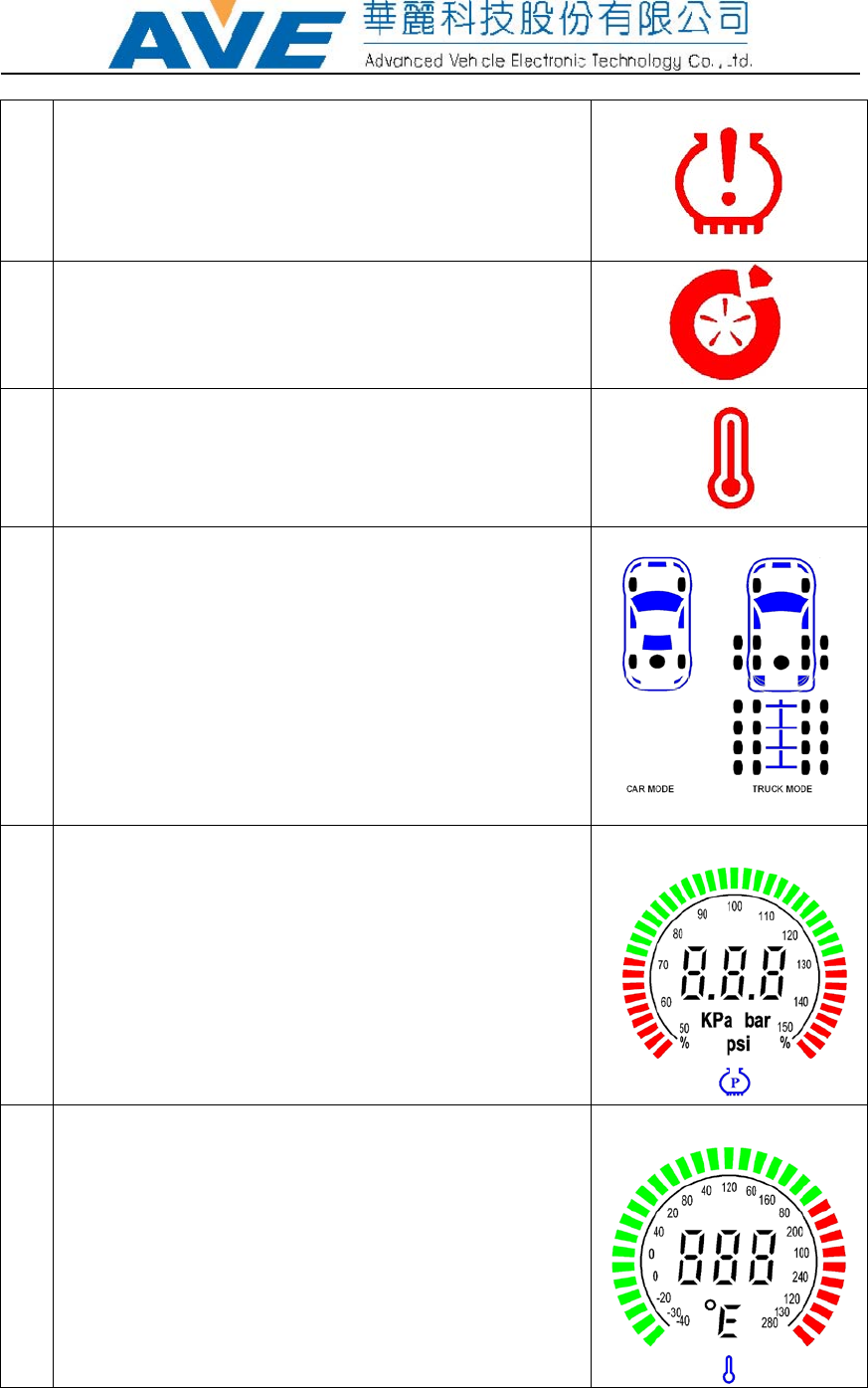 • AVE’s TPMS system is designed to monitor the tires condition and alert