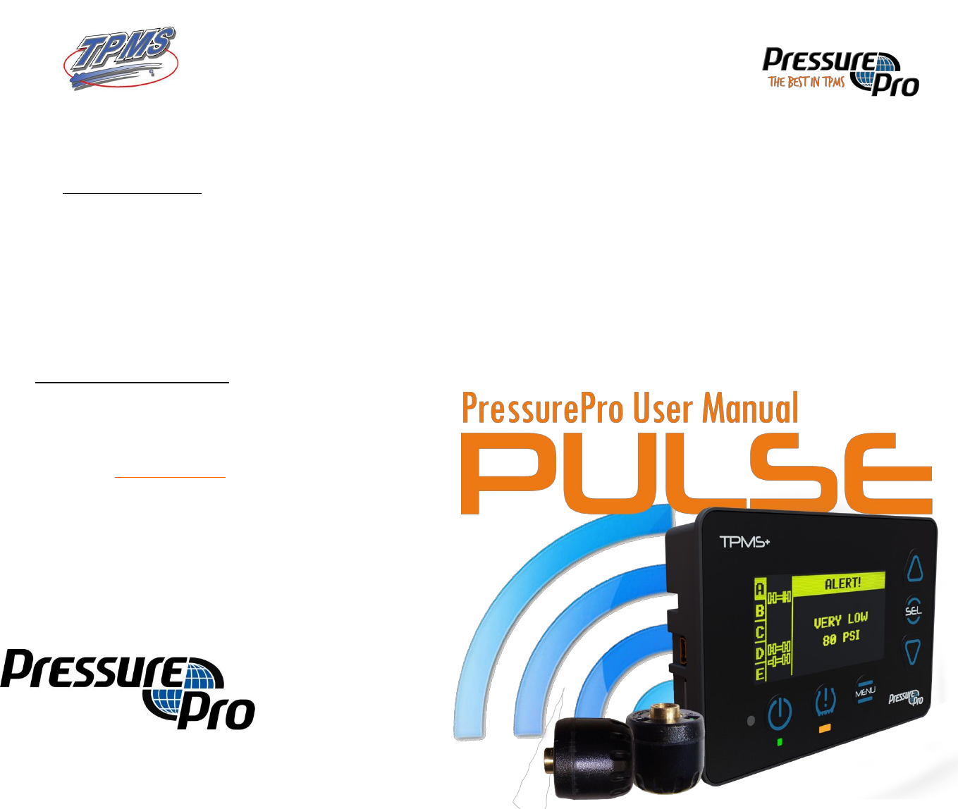 PressurePro is a wireless electronic Tire Pressure Monitoring System (TPMS) that is