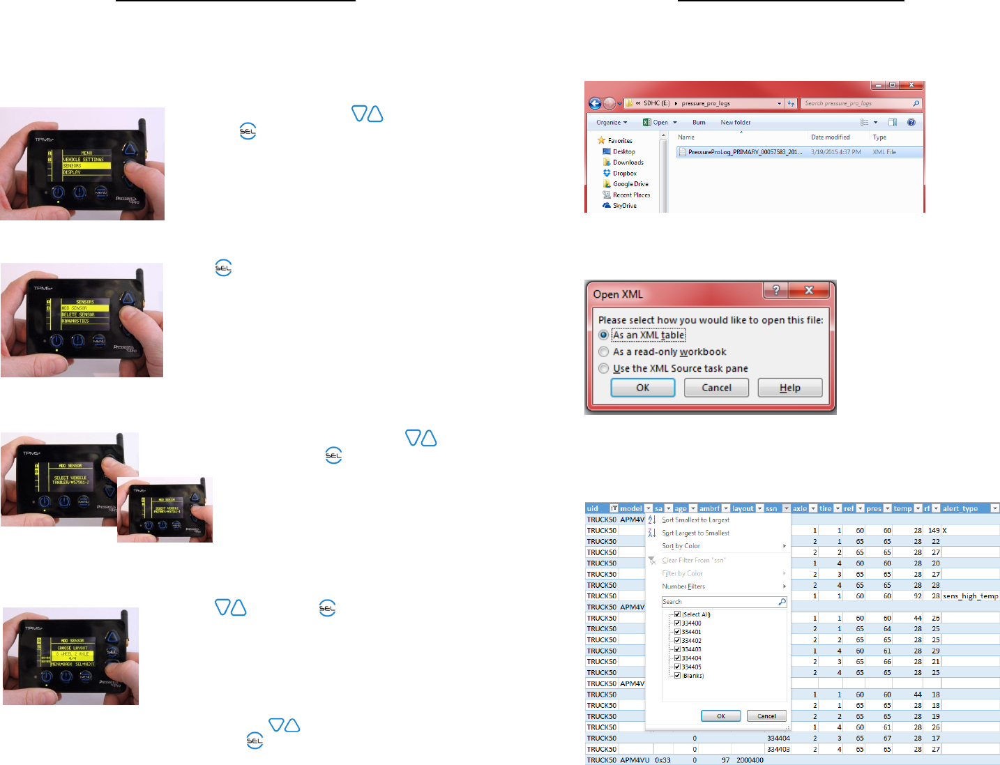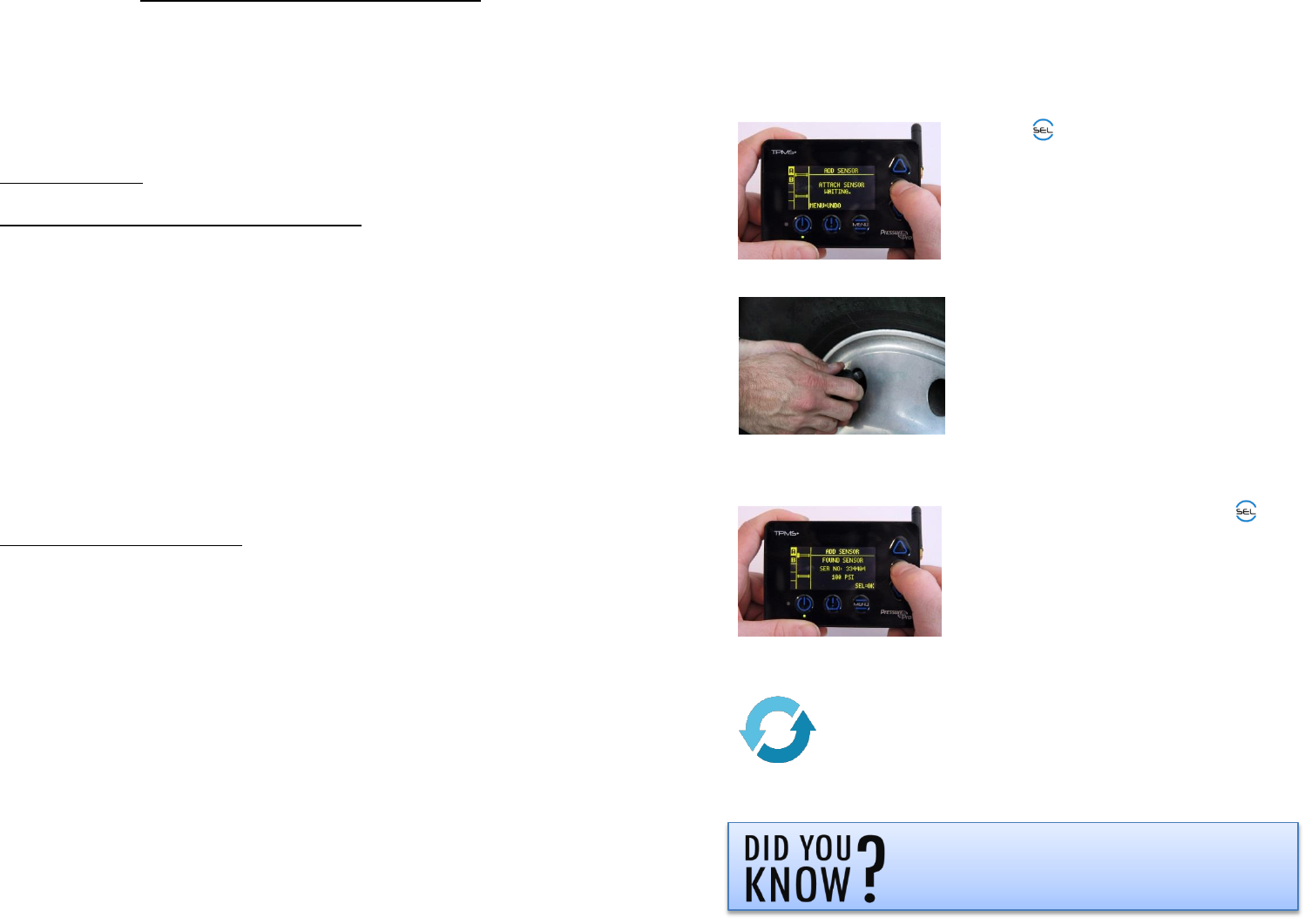 a vehicle’s tires to the Display. If a Sensor fails to give a pressure reading, slightly move the