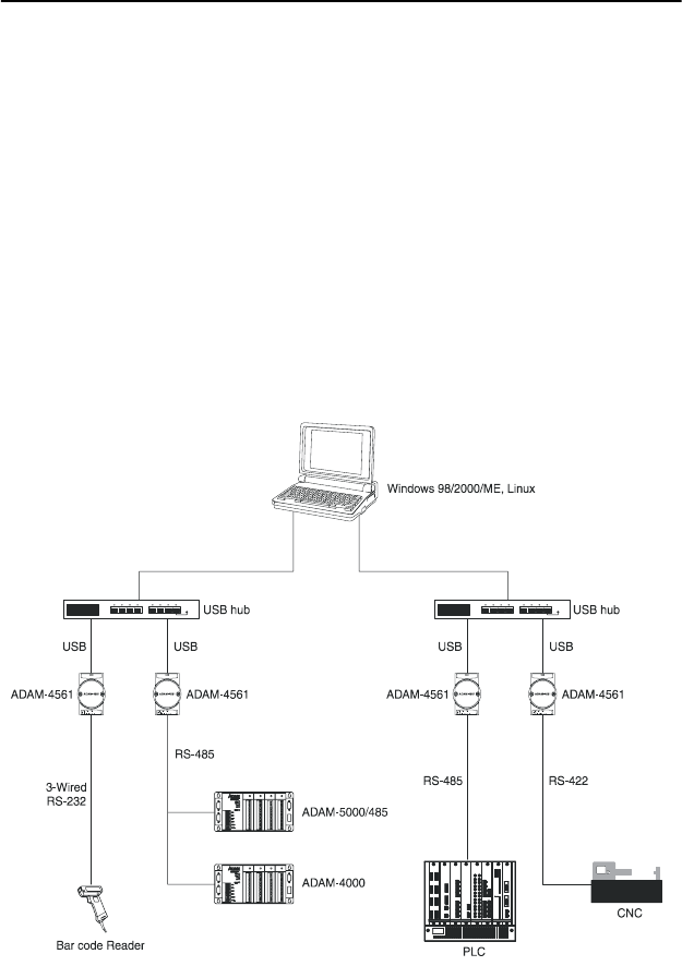 can access the COM port from USB ports. The ADAM-4561 can be inte-