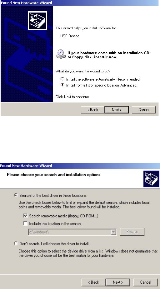 item “Search removable media (floppy, CD-ROM…)”. Click the “Next