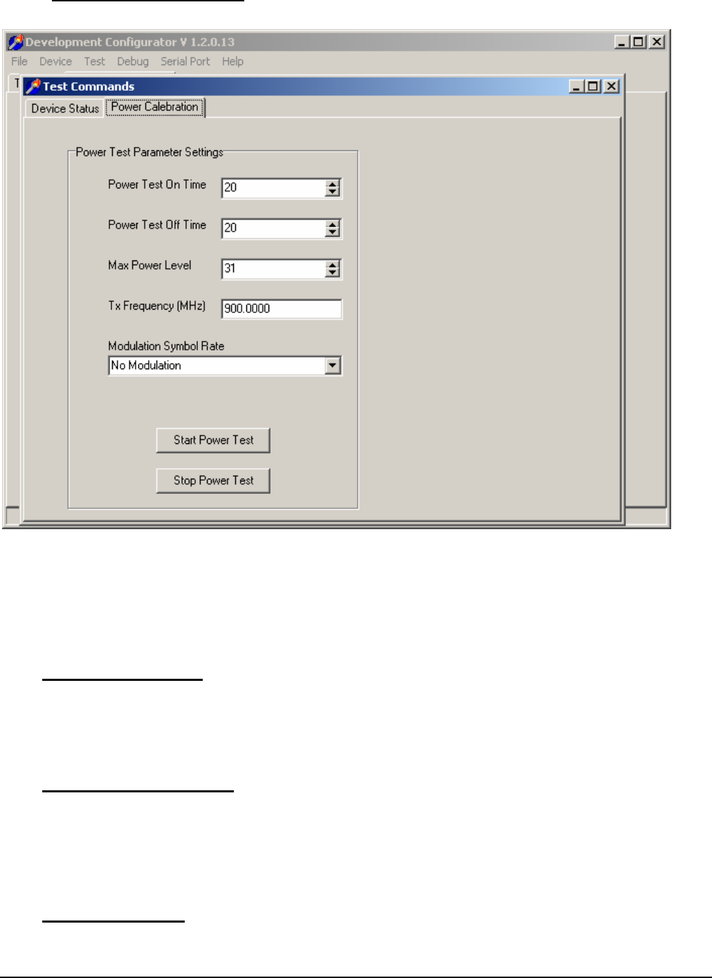 chosen. With the [Start Power Test] and [Stop Power Test] the power amplifier is turned on and off.