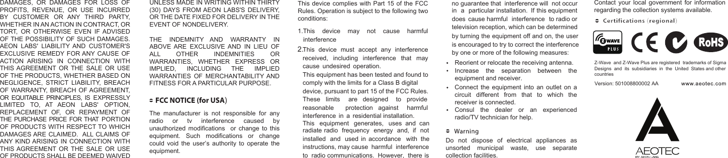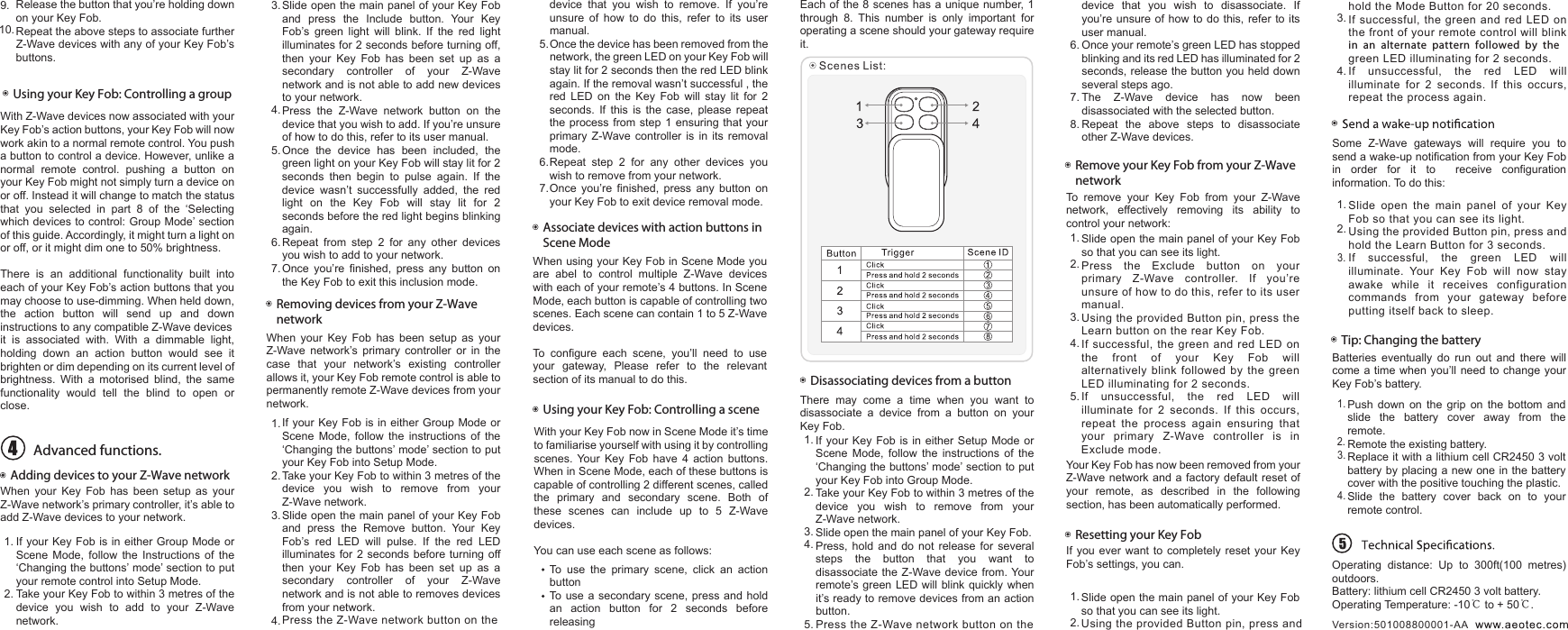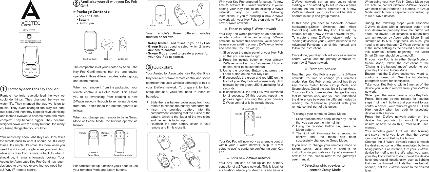 Aeon Labs ZW088 Key Fob Gen5 User Manual 501008800001 Key Fob Gen5 AA