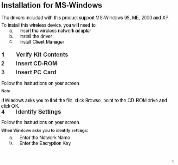 Agere Systems Nederland B.V. IEEE 802.11 a/b/g CardBus Card Information to the user