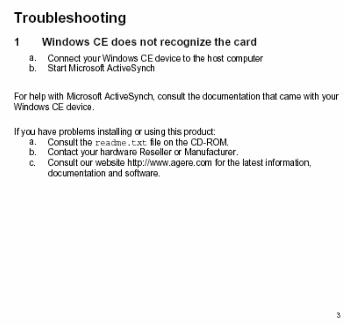 Agere Systems Nederland B.V. IEEE 802.11 a/b/g CardBus Card Information to the user