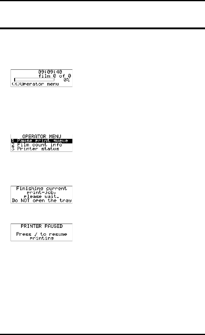 QIn Operator mode, two characters display the print queue status. Refer to “Man-