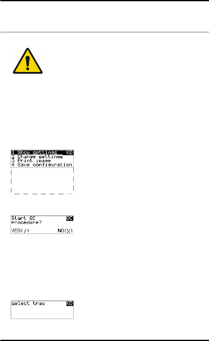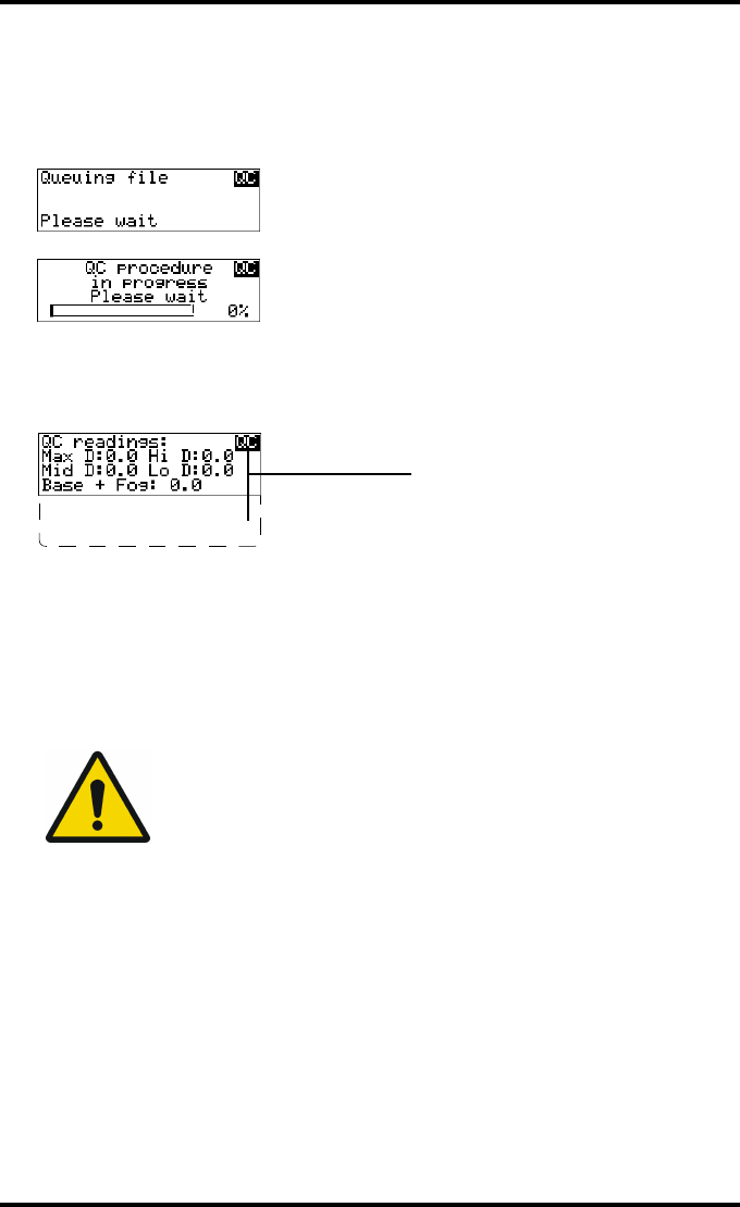 •Press the Confirm key (YES) to start the QC procedure and proceed with step 5.