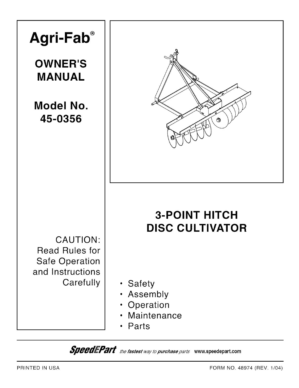 Agri Fab 45 0356 User Manual CULTIVATOR Manuals And Guides L0406291