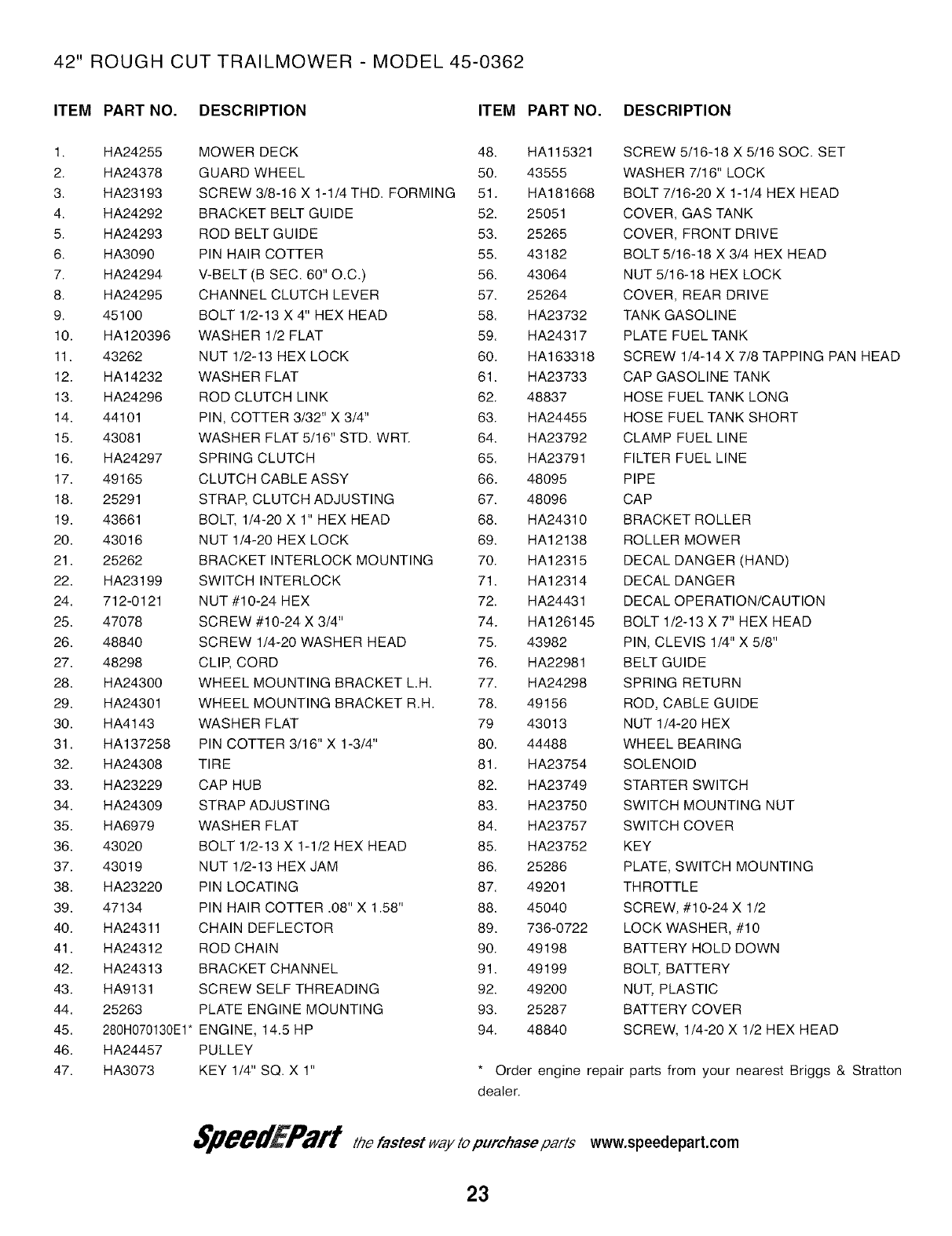 Agri Fab 45 0362 User Manual 42 ROUGH CUT TRAIL MOWER Manuals And Guides L0406294