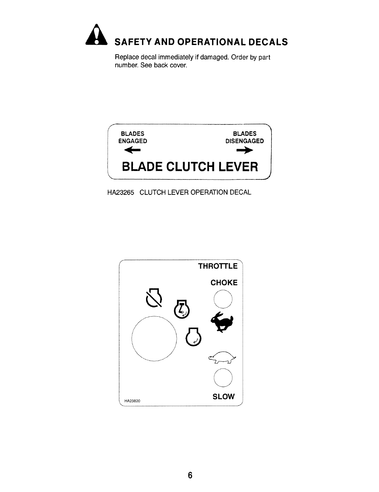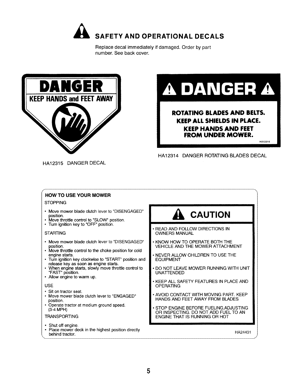SAFETY AND OPERATIONAL DECALS ................ 5,6